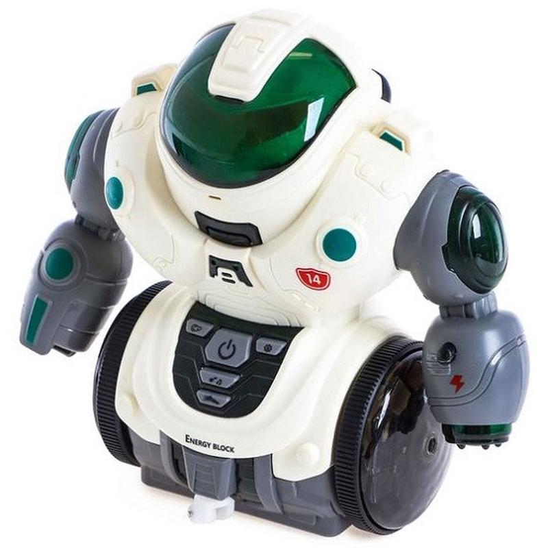 Робот выполнен в футуристическом дизайне, его безупречно белый корпус украшен темно-зелеными вставками. Каждая рука механического робота оснащена мощным игровым механизмом. Правая рука - пушка, которая выстреливает, благодаря кнопке, пластиковым патроном на присоске. Левая рука - спрей машина, просто добавьте воды, нажмите кнопку спрей и наслаждайтесь огромным количеством пара! Функции робота: - спрей - активирует пары; - кнопка с символом - воспроизводит звуки различных животных; - кнопка музыка - активирует различные мелодии. Эффекты робота: - шлем светится синим цветом; - левая рука подсвечивается красным и синим; - колеса светятся разными цветами. Работает от 3 батареек типа АА (не входят в комплект). Озвучен на украинском языке. Размер коробки 17 * 10 * 18 см.