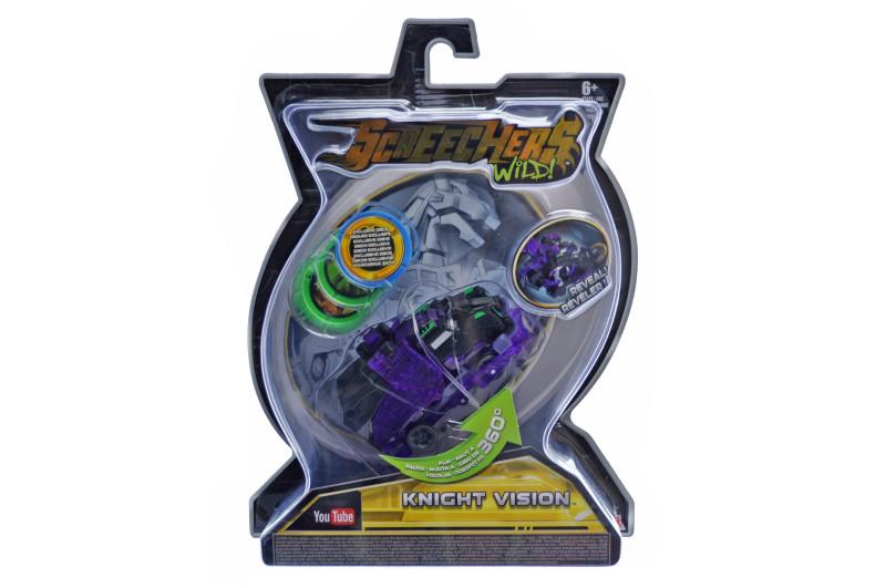 Screechers Wild! - це перші в історії машинки, які роблять сальто на 360 градусів і трансформуються в дикого звіра прямо в повітрі. Можеш собі таке уявити? Влаштовуй неймовірні пригоди, видовищні бої і фантастичні гонки Кожен скрічер трансформується в тварину з суперсилою, потрібно тільки запустити машинку направляючи її на магнітний диск або навпаки запустити диск в машинку, при торканні з яким вона зробить перекид в повітрі і перетвориться на звіра. Скрічер Найтвіжн трансформується в крутого крилатого коня-Пегаса. Для того, щоб трансформувати тварину назад, потрібно витягти диск і закріпити пружинку знизу машини, і ви знову можете вступати в бій. Диск має гладку поверхню для бездоганного ковзання і гумову поверхню для фіксації на місці. Випробуй свого скрічера, бийся за скрічер-паливо і одержимий перемогу Машинка-трансформер Найтвіжн має міцну конструкцію з надійними кріпленнями і виконана з високоякісного матеріалу. У наборі SCREECHERS WILD! L 2 - Найтвіжн: - машинка - 3 диска Саме час почати збирати всю колекцію Диких Скрічеров! Бери участь в баттлах - стань крутим скрічером! Шукай нові серії про пригоди скрічеров на Youtube. Рекомендовано для дітей від 5 років.