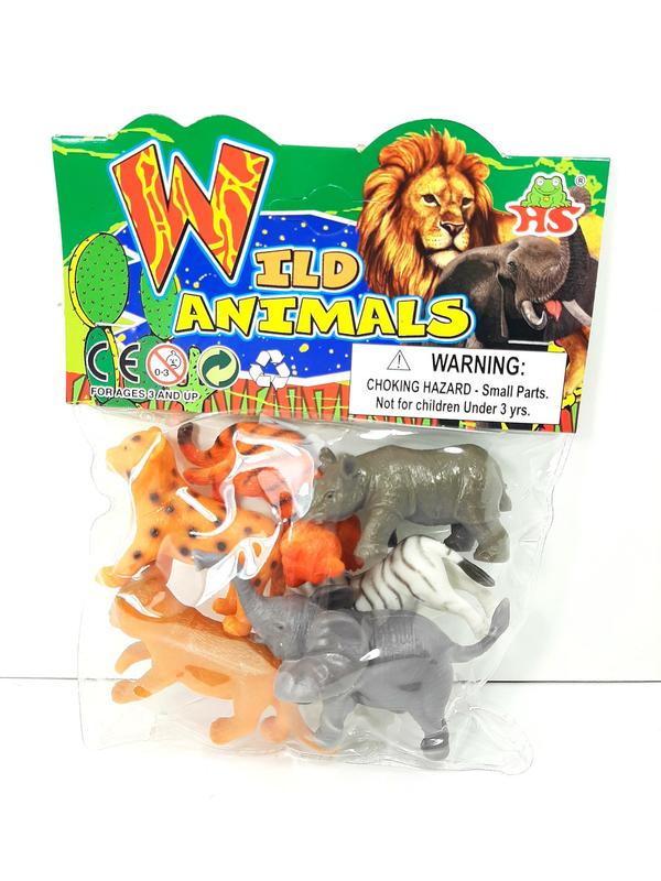 Дикі тварини, дитинчата, набір В наборі: Слонік, зебра, носоріг, тигр, леопард, лев Матеріал: комбінований Розмір іграшки: в довжину 6-7 см, по висоті 3-5 см Упаковка у пакеті: 17×13 см Китай