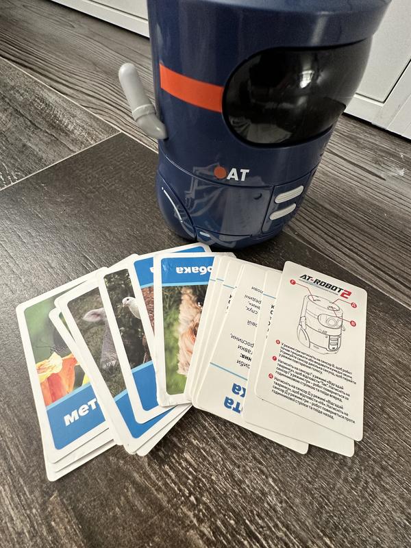 Особливості Світлові ефекти, Мелодії, Звукові ефекти, Відтворення звуків/фраз людей, Диктофон Мови Український At Robot 2 – це розумний робот із сенсорним керуванням, який розмовляє українською мовою! А тепер маленький розумник уміє відгадувати тварин! З ним так весело гратиме! Динамічна музика, цікаві рухи та безліч цікавих реакцій. Робот стане найкращим другом для дитини, спілкуючись із нею українською мовою та виконуючи різні команди. Робот уміє відгадувати тварин! У комплекті 20 карток із зображенням тварин та цікавими фактами про них. Вибирайте одну з них, відповідайте на запитання робота – і він обов'язково вгадає вашу тварину! Розмовляє українською мовою. Сенсорне управління - торкніться сенсора, щоб робот почав рухатись. Робот обов'язково здивує вас своїми цікавими рухами та веселим лепетом. Говорить смішним голосом. Записує та повторює фрази - можна записати 3 голосові повідомлення. Танцює – 12 мелодій та танців, які не залишать нікого байдужим! Гучність регулюється – робіть музику та звуки голосніше або тихіше за допомогою сенсорів (7 ступенів гучності). Потрібно 3 батареї типу ААА (не входять у комплект). Рекомендовано для дітей віком від 3 років.