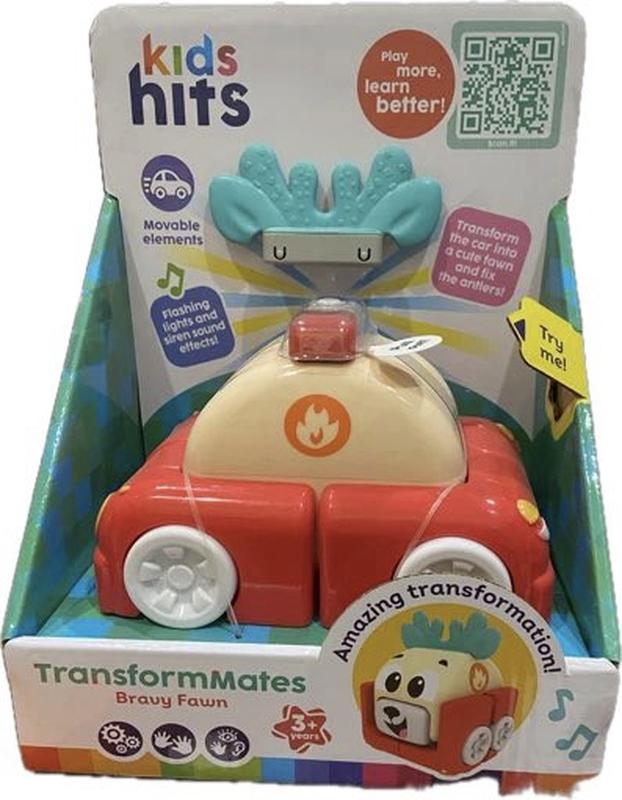 Іграшка машинка-трансформер від Kids Hits подарує дитині масу вражень від гри. Гра Ігровий процес надовго захопить дитину, адже тут задіяно одразу дві іграшки. З одного боку, це пожежна машина, а з іншого – кумедний олень, який виходить шляхом трансформації всього кількома рухами. Все дуже просто й дитина впорається самостійно. Є світлові та звукові ефекти. Розвиток З такою іграшкою дитина в ігровій формі тренує моторику рук, уяву, мислення, координацію, логіки, спритність та фантазію. Особливості Бренд: Kids Hits; Країна бренду: Китай; Рекомендований вік: від 3 років; Матеріал: пластик; Габарити коробки: 12х23х17 см; Висота іграшки: 14 см; Вага: 300 г; Живлення: від 3 батарейок типу AG3 (у комплекті); Комплектація: іграшка машина-трансформер.