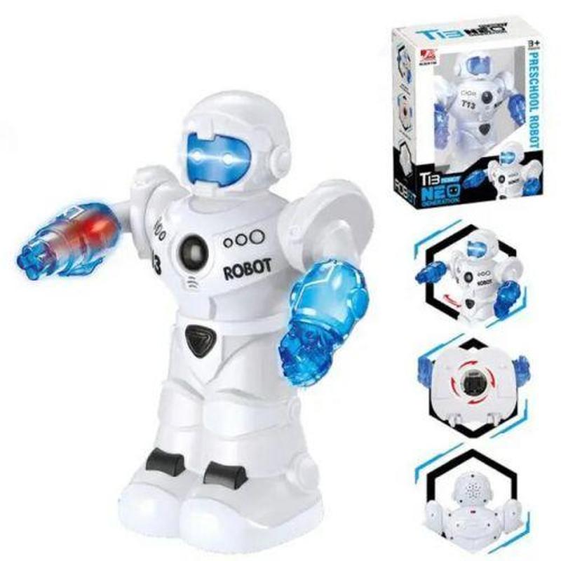 Робот інтерактивний "Neo Generation". Самостійно їздить у різні боки. Оснащений характерними для робота звуковими ефектами, звуками пострілу, фразами англійською. З яскравим підсвічуванням. У робота рухливі руки. Працює від 3-х батарейок АА (немає в комплекті). Бренд: Jinxianghuang Паковання: Коробка Колір: Білий Тип ел-тів живлення: Батарейки (АА) Кількість ел-тів живлення: 3 Ел-ти живлення в комплекті: Ні Вага з упаковкою: 385 г Габарити в упаковці: 21.5 x 27 x 11 см Габарити без упаковки: 20 x 28 x 11 см Країна виробник: Китай Матеріал: Пластик Комплектація: Робот