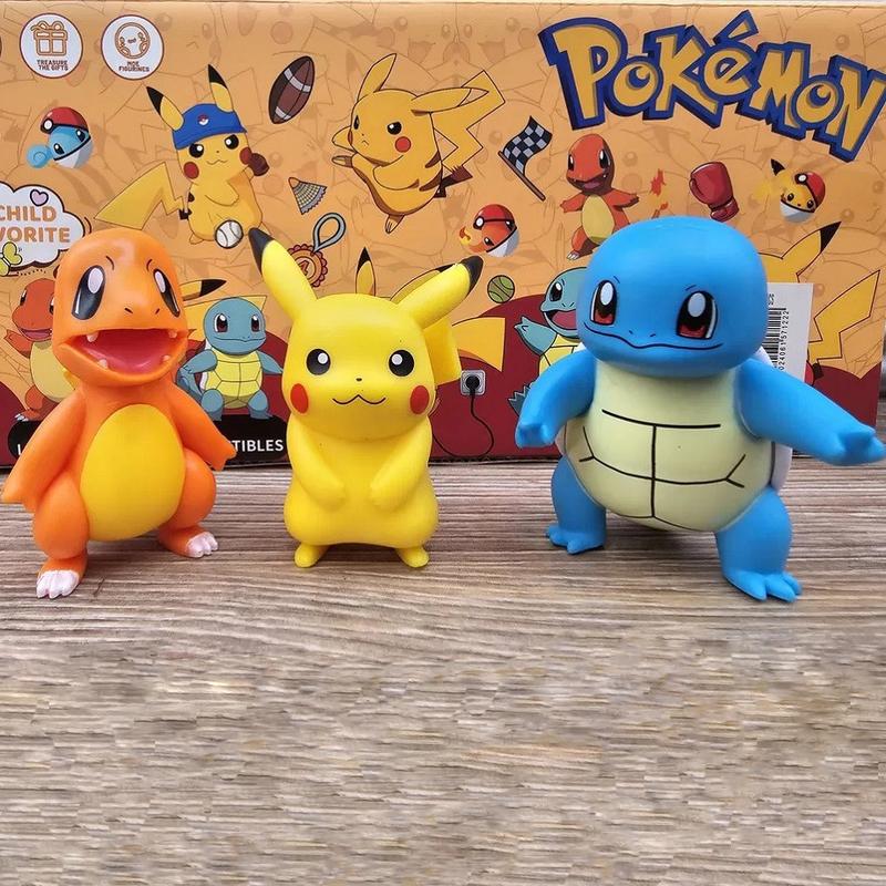 Цей набір фігурок Покемона — ідеальний подарунок для всіх шанувальників захопливого світу Покемонів. Фігурки легко поміщаються в руках, що дає змогу дітям насолоджуватися грою та розвагами. Вони також можуть бути чудовим декором для вашого столу або полиці. До набору входить: Пікачу, Сквіртл, Чармадер. Висота фігурок приблизно 8 см. Розмір коробки 31 * 4 * 28 см.