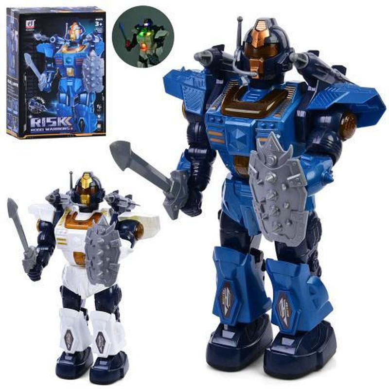 Іграшка "Робот", 33 см, 2 кольори. Самостійно рухається, є світлові та звукові ефекти. Живлення - батарейки. Матеріал - комбінований. Паковання — коробка. Розмір - 23х11,5х33,5 см.