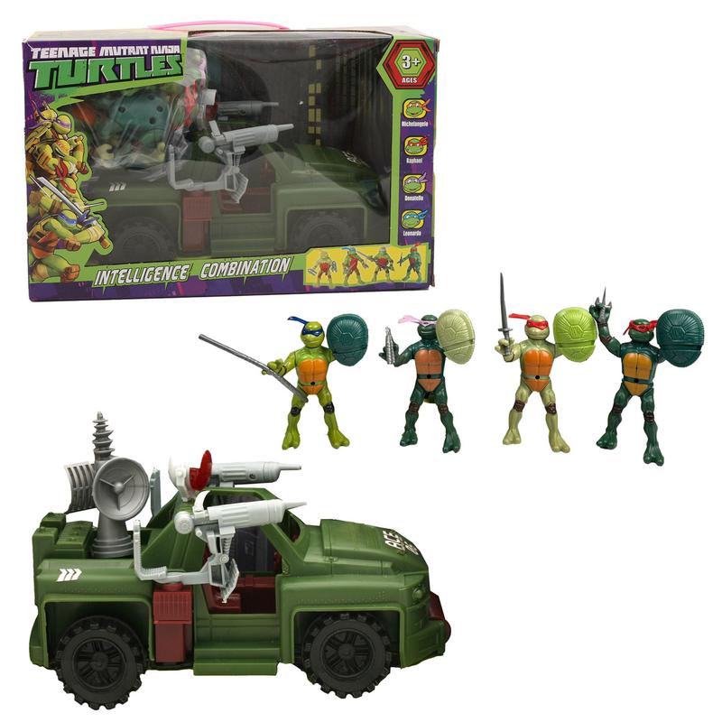 Набір іграшок "Черепашки Нінзя". 4 фігури, автомобіль. Матеріал - пластик. Упаковка - коробка.