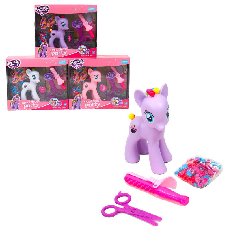 Іграшка "Поні" 3 кольори. Фігурка та аксесуари в наборі. Матеріал - пластик. Паковання — коробка. Розмір - 28х8х24 см.