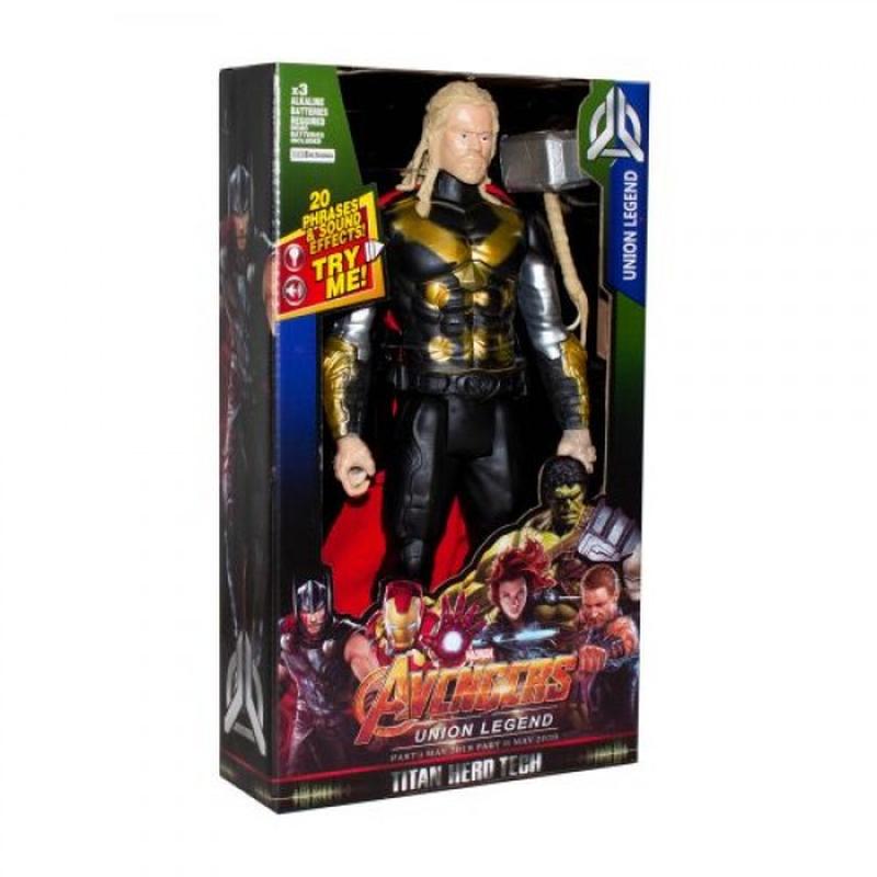 Фігурка супергероя виготовлена зі щільного, міцного пластику. Руки, ноги та голова рухливі. На грудях супергероя кнопочка, натиснувши на яку дитина почує фрази англійською мовою, різні звукові ефекти. Висока деталізація.