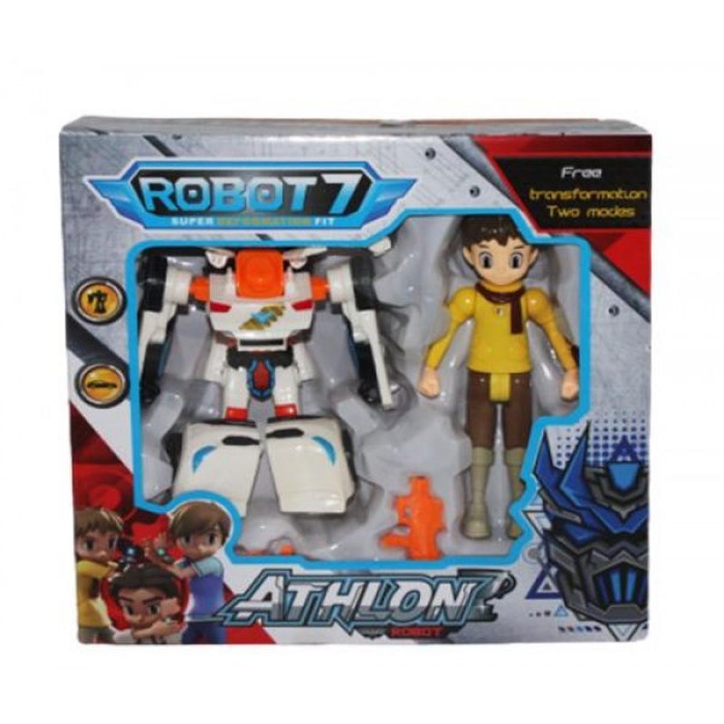 Пластиковий робот-трансформер, який може трансформуватися в техніку пересування. Висота робота 12 см., висота фігурки 14 см. Фігурка має рухомі частини тіла, також є кнопка ззаду, під час натискання на яку світиться лампочка на грудях.