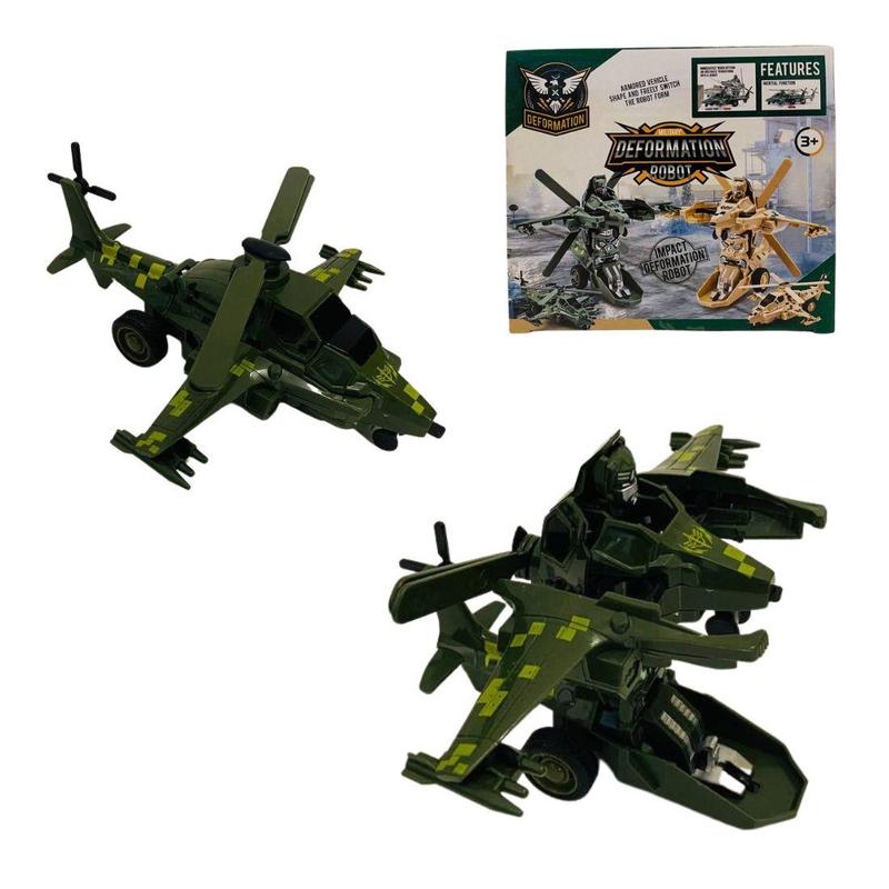 Вертолет трансформер выполнен в 2-х цветах и оснащен инерционным механизмом.