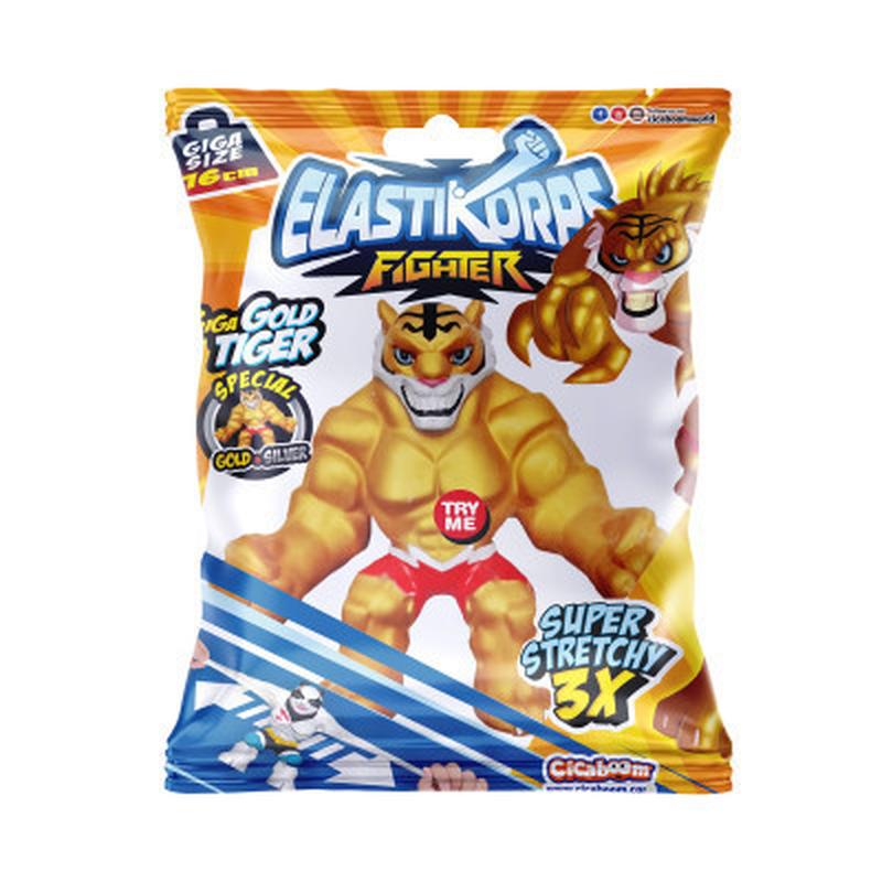 Знайомтеся з неймовірними бійцями від ELASTIKORPS! Вони супереластичні, розтягуються в 3 рази від свого початкового розміру! Скручуйте їх, розтягуйте, а вони легко повернуться до початкового вигляду. Іграшки ELASTIKORPS сподобаються не тільки малюкам, а й дорослим, адже їх можна використовувати як антистрес. Збирай усю колекцію для захопливих ігор у стилі екшн! Золотий тигр любить використовувати у боях елементи зі східних бойових мистецтв. Його важко перемогти, бо він любить тренуватися в джунглях щодня. Перевірте його силу на рингу! - Спеціальний золотий герой: у нього металевий колір! - Внутрішня частина іграшки наповнена піском. - Чудово підходить для зняття стресу! - Висота іграшки: 16 сm. - Зберіть усіх 6 героїв! До набору входить: - 1 іграшка; - лист колекціонера. Рекомендовано для дітей віком від 4 років.