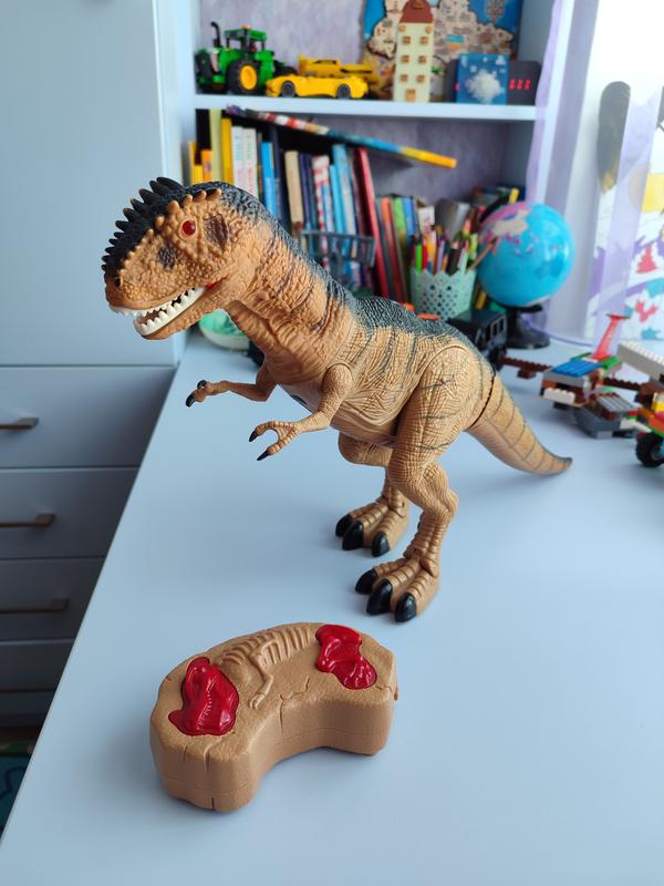 Крутий динозавр, ходить, ричить, рухлива голова, відкривається паща. Привести в дію можна з пульта і також є кнопка на самій іграшці.