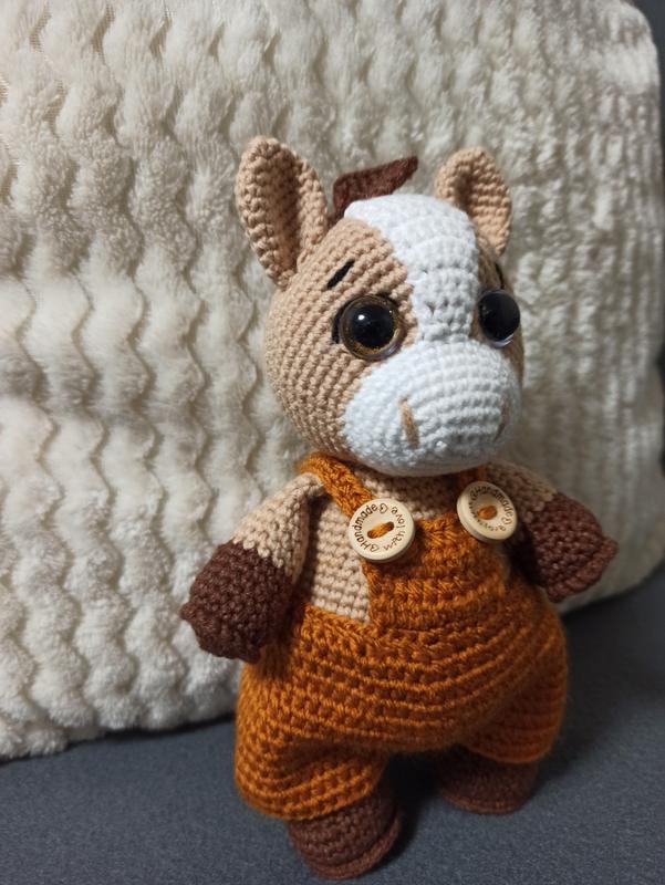 В'язане лоша ручної роботи, виконане з гіпоалергенної пряжі. Символ цього року, гарно підійде на подарунок. Висота іграшки 17-18см