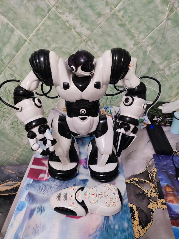 Робот интерактивный большой Wowwe Robotosabien, в хорошо у стані, все працю, в руках є підсвітку обох, ходить, підіймає предмети і ТД, в інтернеті є опис. Пульт в комплекті , нові батарейки теж, в кожній нозі по 2 бочонка+ 3 ааа в пульті.