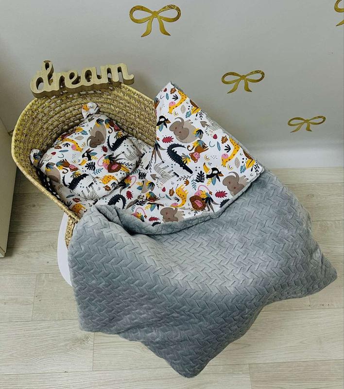 Новинка🤍🩶 Набір у візочок У наборі : - простирадло на резинці - ортопедична подушка -ковдра плед з утеплювачем (зʼємний) розмір 80*100 см Дуже практичний, якісний набір Тканина 100 % бавовна
