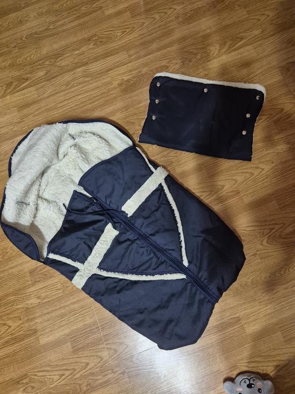 Футмуф у каляску, візок, і санки, до нього є муфта на руки, тепленький, зручний, цвна за дві речі .