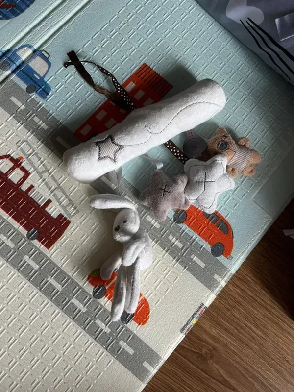 Подвесная игрушка на колясок (4 игрушки, зайчик играет мелодию) - 100 грн