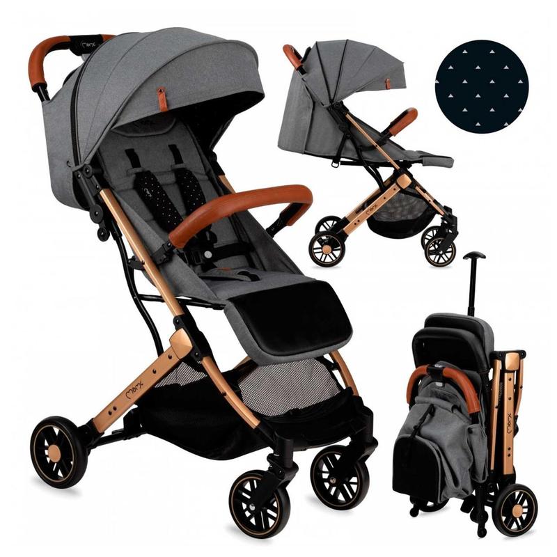 Прогулянковий візочок MoMi Estelle - маневрений, компактний візочок з абсолютним хітом - ручкою для керування складеною коляскою. Характеристики: - для дітей з 6-місячного віку - регульована спинка - регульована підставка для ніг з покриттям, що легко очищається, з екошкіри - амортизація чотирьох коліс, високоякісні поліуретанові стійкі до проколів шини - п'ятиточкові ремені безпеки - двошаровий знімний бампер та поручень зі знімним шаром пінопласту та екошкіри - капюшон з 2 вікнами, що розширюється. - зручне ножне гальмо - має подвійний замок, що запобігає мимовільному складання коляски та блокування розкладання коляски - функція вертикального положення у складеному стані - Висувна ручка для зручного переміщення складеної коляски - у складеному стані стоїть вертикально Габарити: - вага: 7,8 кг - розмір: 105х51х75 см у розкладеному вигляді, - розмір: 58х51х21 см у зібраному вигляді - максимальне навантаження: 15 кг