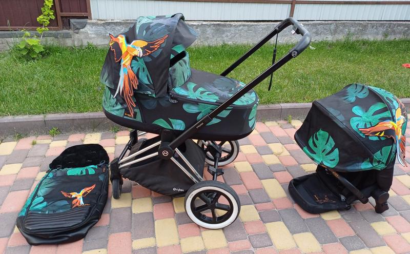 Коляска Сybex Priam Birds of Paradise 2 в 1 у гарному стані.Є нюанси,все на фото. В комплекті люлька,шасі,прогулянковий блок, плед та москітна сітка,для упакування наявні оригінальні коробки.