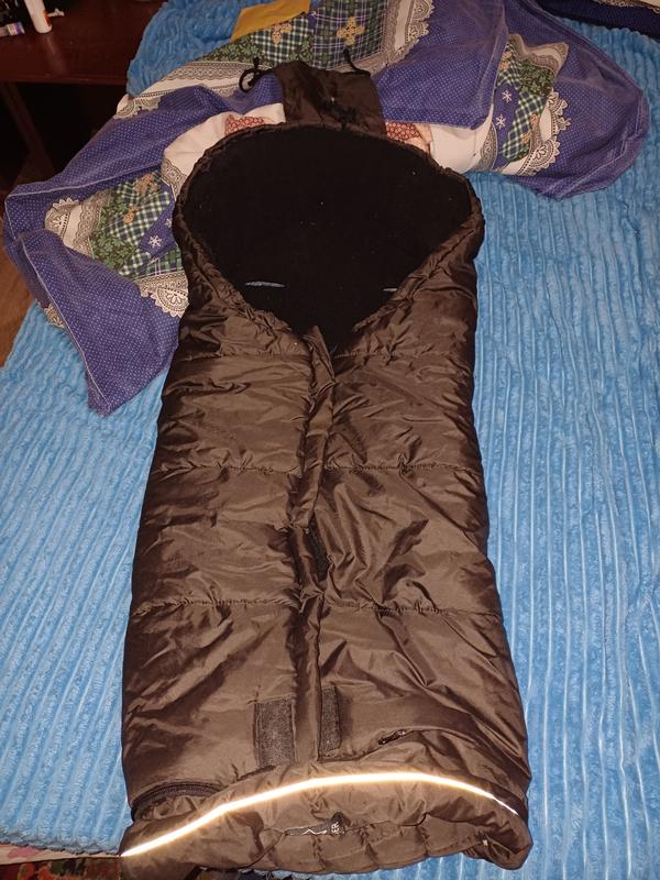 Конверт для дитячої колясочки, дуже теплий, має спеціальні нековзаючі нашивки знизу. Материал стойкий к ветру и отталкивает влагу. Есть отверстия под под пяти-точечные ремни безопасности в коляске. Скольжение предотвращается специальным покрытием. Область изголовья конверта имеет дополнительную фиксацию к коляске. Верх может стягиваться в виде кокона и защищает дополнительно. Молния сверху Низ отстегивается круговой молнией. Светоотражающие элементы в нижней части. Защита от грязи изнутри в районе ножек. Машинная стирка при 40°C.