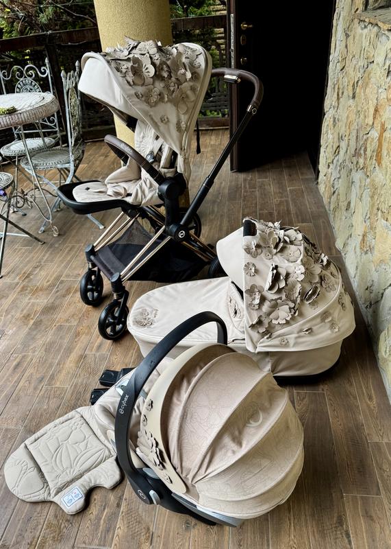 Cybex Simply Flowers Beige 4.0 в хорошому стані, є сліди експлуатації, але ще їздити і їздити) в комплекті: шасі роуз голд, люлька, прогулянка, автокрісло та адаптери, з якими люлька та автокрісло кріпляться до шасі, залишилась 1 коробка. Продаж в пріоритеті комплектом. Ціна на сьогоднішній день такого комплекту 85500 грн.