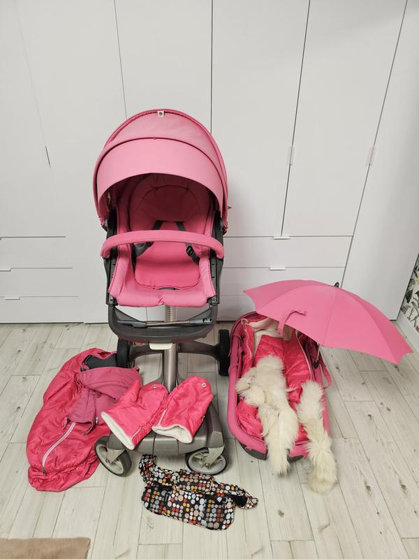 Вітаю! Продається дитяча коляска Stokke - дуже якісна, легка, зручна і в свій час доволі преміальна. Не буду перелічувати усі плюси цієї коляски, їх можна прочитати в інтернеті, але зазначу два неочевидні плюси: по-перше, це великі колеса, що дає їй дуже гарну стійкість, маневреність і зручність в управлінні, по-друге, максимальна висота ручки управління. Вона (висота) доволі велика, що дозволяє везти коляску з рівною спиною, а не в пів нахилі до неї. В нас до цього була коляска chicco i-move і мені реально приходилось бути трішки нахиленим до коляски, коли гуляв з дитиною, тут навпаки, можна йти рівно і розслабленно, ба навіть більше спертись на саму коляску/ручку. При чому, я маю доволі посередній зріст, навіть уявляти не хочу, якби було людям з великим зростом. Тому, суто за це рекомендую цю коляску, 10/10. Щодо комплектації: Майже усе, що до неї йшло є в комплекті: шасі, на яке кріпиться люлька або прогулянковий варіант, люлька, прогулянковий варіант з ручкою/обмежувачем, парасолька, сумка на ручку з підстаканником, зимові рукавиці, зимовий чоловічок в люльку, захисний шар для прогулянкового варіанту, хутро, ще якісь штуки, якими ми ніколи не користувались. Дивіться на фото, старався максимально все сфоткати, якщо є питання, чи треба зробити додаткові фото, пишіть - зроблю. Тепер щодо нюансів: зламаний важіль регулювання ручки. Оця ручка, що має таку еліпсоподібну форму крутиться навколо осі що її тримає. Важіль працює, зламаний лише язичок, який приводить механізм в дію. Відповідно, я викруткою або іншим гострим предметом просто налаштував те положення ручки, яке мені потрібно і все. Це більше ні на що не впливає. Скласти/розкласти коляски це не заважає. Це суто питання до того, під яким кутом у вас буде ручка. Також, зламаний фіксатор подовжувача для парасольки. Ми цим майже не користувались, але наскільки я розумію конструкцію, парасольку можна вставити саму, а можна через подовжувач, щоб було більше простору і маневреності під нею, так ось подовжувач в коляску стане, але не зафіксується, бо фіксатор зламаний. Сама парасолька має свій фіксатор, який в порядку. Ці два нюанса сфоткані, ви можете їх побачити, це останнє і передостаннє фото.