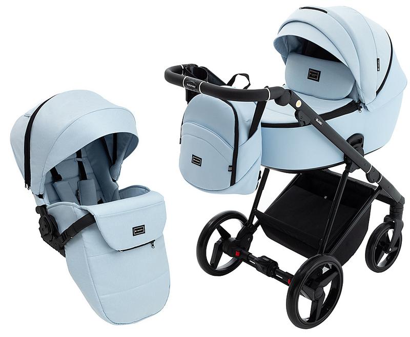 Детская коляска из Польши Adamex Blanc — это оптимальное решение для родителей, которые ищут легкую модель для использования с рождения. Несмотря на свои компактные размеры, Adamex Blanc обладает максимальным функционалом и амортизацией, обеспечивая комфортное передвижение вашего ребенка в течение первых трех лет. Коляска складывается за секунды, даже с установленным прогулочным блоком! В комплект входят просторная люлька для новорожденных малышей, прогулочное сиденье от 6 месяцев, дождевик и москитная сетка. Люлька коляски Adamex Blanc предлагает просторное и комфортное спальное место. Внутренняя хлопковая обивка и матрас из кокосового волокна способствуют здоровому сну малыша. Накидка на ножки хорошо закрывает ребенка от ветра, выполнена из плотной ткани, крепится с помощью молнии. Капюшон оснащен кнопкой регулировки, большой секцией для проветривания с москитной сеткой и дополнительным козырьком. Прогулочный блок оснащен капюшоном до бампера. Для жары в нем предусмотрена большая вентиляционная секция. Бампер с разделителем для ног и пятиточечные ремни с мягкими накладками надежно фиксируют малыша в коляске. Наклон сиденья регулируется одной рукой до горизонтального положения. Для ног малыша предусмотрена регулируемая подножка. Преимущества шасси: Складывается вместе с установленным прогулочным блоком в любом направлении. Прочная алюминиевая рама, весом — 5,5 кг. Телескопическая регулировка высоты родительской ручки. Бескамерные полиуретановые колеса. Ширина колесной базы — 58 см. Передние поворотные колеса с фиксацией направления. Амортизация на передних и задних колесах. Стояночный тормоз. Вместительная корзина. Дополнительно коляска комплектуется практичной сумкой для мамы и подстаканником. Возможна установка автомобильного кресла группы 0+ (не входит в комплект).