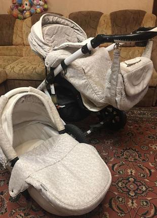 Дитяча коляска 2 в одному. В гарному стані, без дифектів. Біла з золотою вишивкою.
