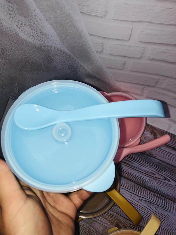 100% харчовий силікон На присоску В наборі миска і ложка , кришка Колір : лаванда , м'ята , теплий жовтий , рожева пудра Безпечний матеріал для дитини ! Можна гріти в мікрохвильовці ( легкі розігрів ) Мити в посудомийних машинах Не токсичний ! Відмінний варіант для малюків ) Відправка нп або укрпоштою Є в наявності набори посуду без кришки в комплекті , інша модель ( фото пришлю по запиті ), дивіться мої інші оголошення Є різні силіконові слюнявчики І багато інших товарів для ма