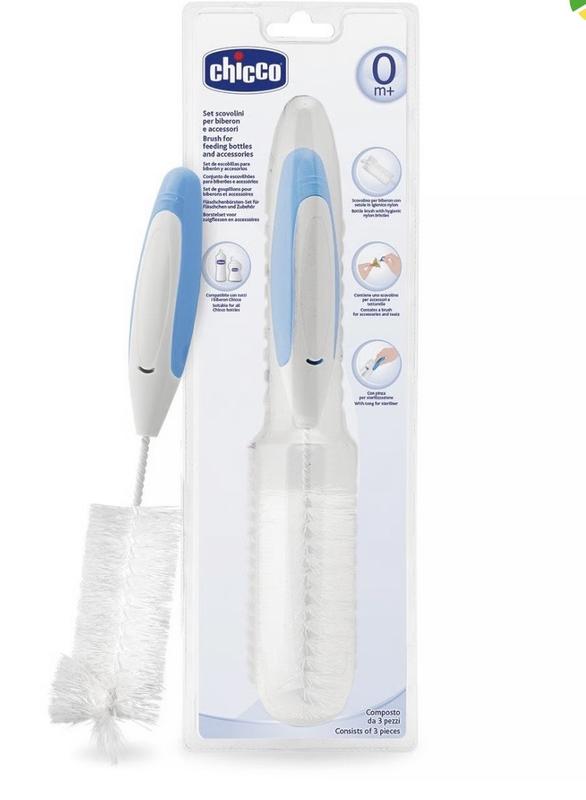 Набір 3 в 1 ідеально підходить для чищення дитячих пляшечок, сосок і аксесуарів. Особливості: Йоржик з гігієнічних нейлонових щетинок — пристосовуються до будь-якої форми пляшки і чистять різну поверхню, забезпечуючи глибоку чистку. Щипці (нижня частина ручки йоржика) — призначені для зручного та швидкого захоплення пляшечок після стерилізації. Маленький йоржик для чищення сосок.