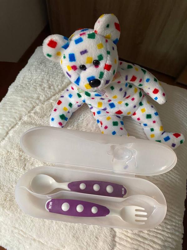 👉🛍При замовленні трьох лотів з моєї сторінки Шафи,діє ВЕСНЯНА АКЦІЯ!!! Лот меншою вартістю , до 200грн, йде в подарунок до вашого замовлення. Продам навчальний дитячий набір від якісного бренду NUK Easy Learning, який допоможе малюкові швидше освоїти процес самостійного поглинання їжі. 💝При покупці набору приємний бонус-подарунок!!!!(на фото футляр для зберігання та яскраве ведмежатко). У набір входить два прилади – це ложечка та вилочка дитячі. Обидва вони мають ручки ергономічної форми.Ложечку та вилочку приємно тримати в руках, крім того, вони не вислизають. Горбики на ручках також допомагають розвивати тактильні відчуття малюка. Набір для годування легко мити, прилади не мають властивості накопичувати наліт. До складу матеріалів виготовлення не входить Бісфенол А. Можна мити в посудомийній машині. Вік від 8 місяців, для хлопчиків та дівчаток. Стан 4 із 5.