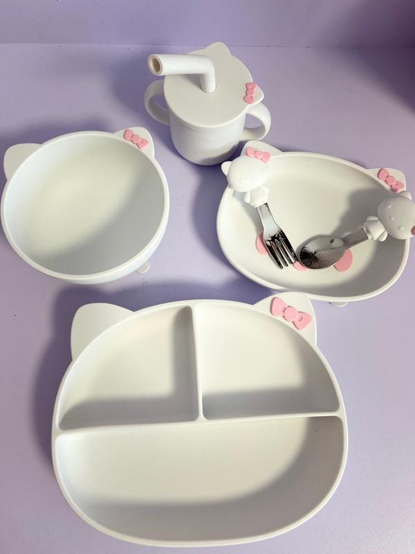 Набір дитячого силіконового посуду для дівчат kitty