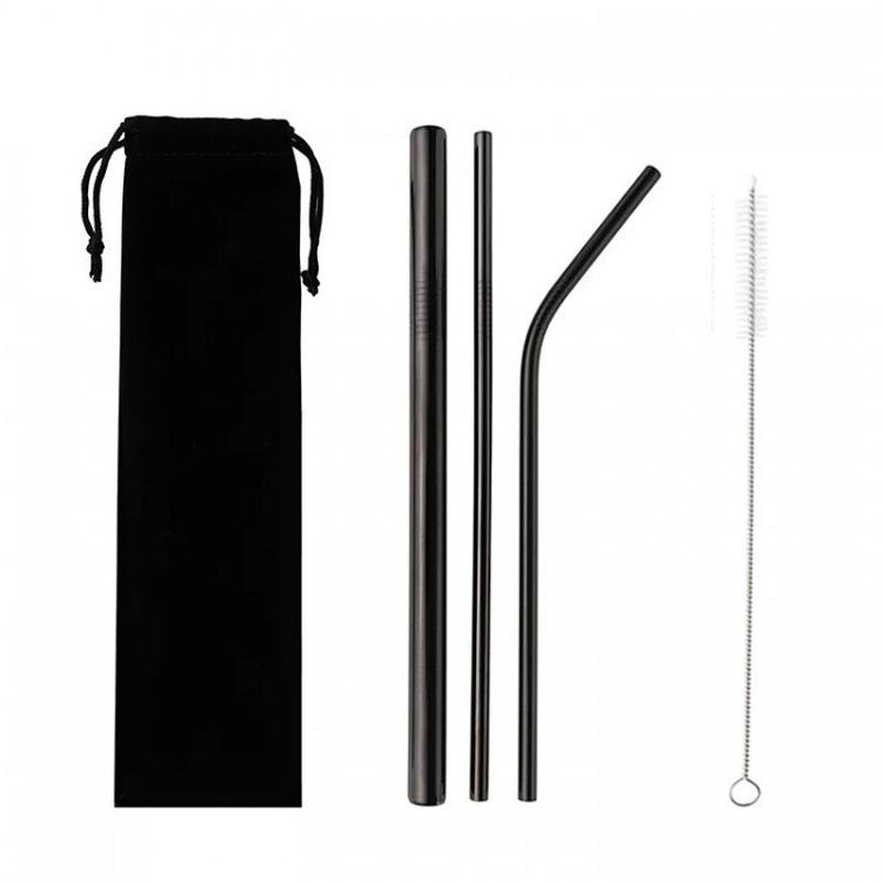 Набор металлических эко трубочек для напитков 4 предмета в чехле, черный