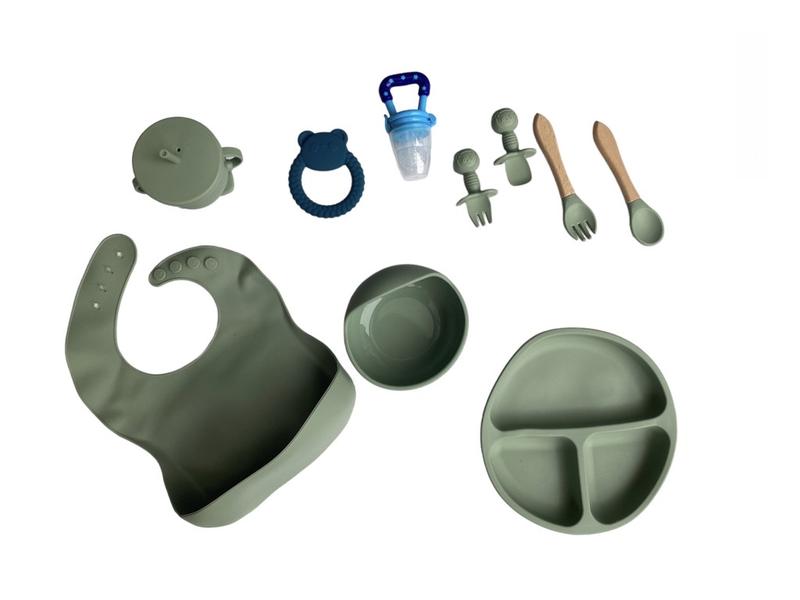 Дитячий силіконовий набір посуду для годування оливковий 12 предметів