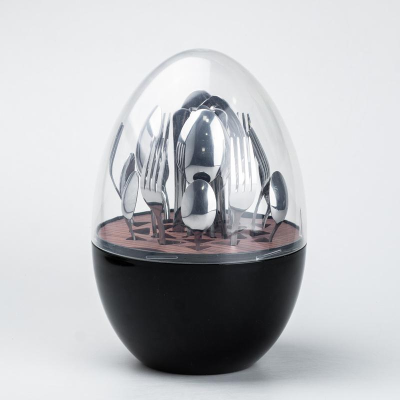 Набір столових приладів на 6 персон із нержавіючої сталі 24 штуки з підставкою "яйце" чорн...