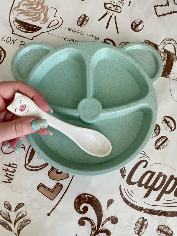 Ложечка дитяча для маленьких діток з мордочкою свинки 🐷 Дуже зручна,ергономічна,не мілка✅ Матеріал:меланін✅ Тарілочка для фону,не продається😌