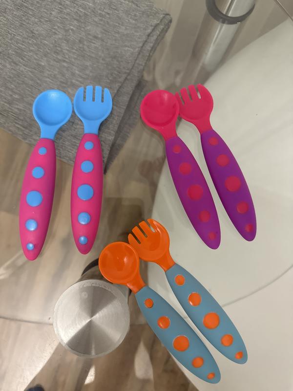 Ложечка и вилка для кормления, оранжевая новая, розовые и синие пользовались, вместе за 150 грн, оранжевая 70, розовая и синяя по 50