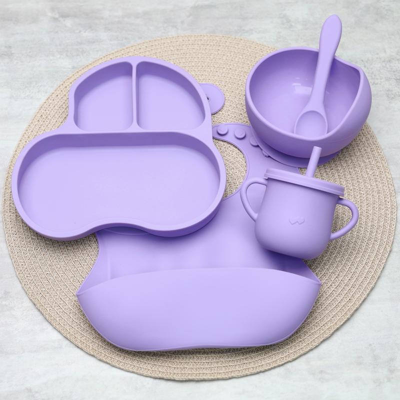 Детская посуда для кормления из 5 предметов, Детские наборы посуды для прикорма Представляем вам уникальный набор детской силиконовой посуды. Этот набор создан с любовью к маленьким гурманам, обеспечивая комфорт и удовольствие во время еды. Преимущества: 1. Безопасность для Здоровья: Весь набор изготовлен из мягкого и безопасного силикона, лишенного вредных химических веществ, что делает его идеальным выбором для детей. 2. Легкость и Прочность: Силиконовая посуда легкая и прочная, что делает ее отличным вариантом для детей, которые только начинают учиться есть самостоятельно. 3. Привлекательный Дизайн: Яркие цвета и приятные формы делают этот набор привлекательным для детей, стимулируя интерес к еде и развивая их аппетит. 4. Легкость в Уходе: Посуда легко моется, не впитывает запахи и не меняет свою текстуру со временем. Характеристики: - Тарелка: Идеальный размер для порций ребенка, безопасная для использования. - Ложка: Специально разработанная для маленьких ручек, облегчает процесс кормления. - Слюнявчик: Помогает сохранить одежду ребенка чистой во время еды. Состав набора: 1. Мелкая тарелка секционная 2. Чашка поильник 3. Слюнявчик 4. Ложка 5. Глубокая тарелка Этот набор детской силиконовой посуды - это не только практичный аксессуар для ежедневного использования, но и заботливый подарок для маленьких гурманов. Позвольте вашему малышу наслаждаться едой с удовольствием и безопасностью!