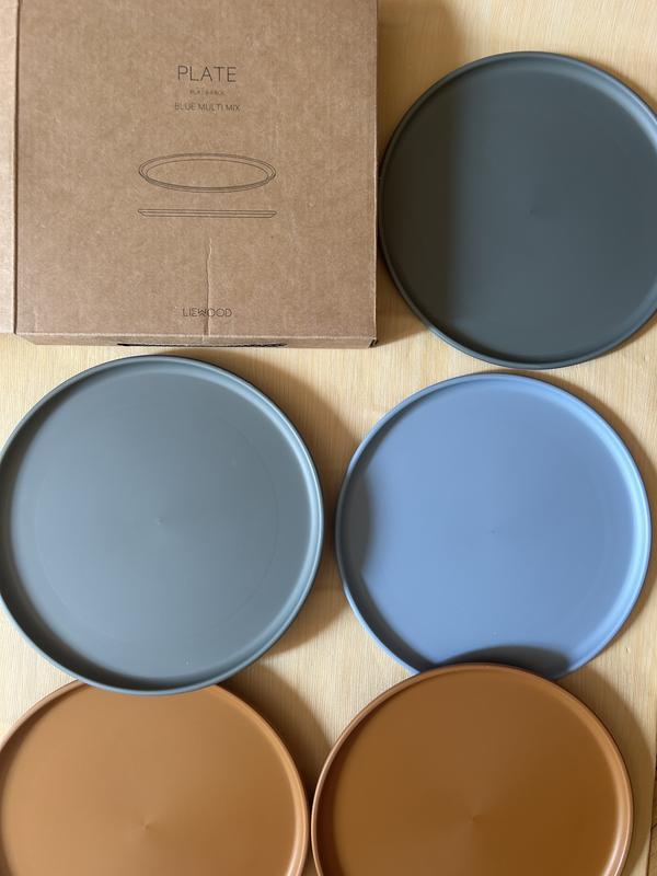 Набір тарілок Liewood Logan Plate Set. В набір входить: 6 тарілок у трьох різних кольорах: сірому, блакитному та коричневому. Склад: 45 % бамбук 25% меламін 25% кукурудзяне борошно 5% дерево можна мити в посудомийні машині не можна гріти в мікрохвильовій та духовій шафі від +70 до -20 Ідеально підходять для щоденного використання дітьми завдяки своїй міцності та безпеці.