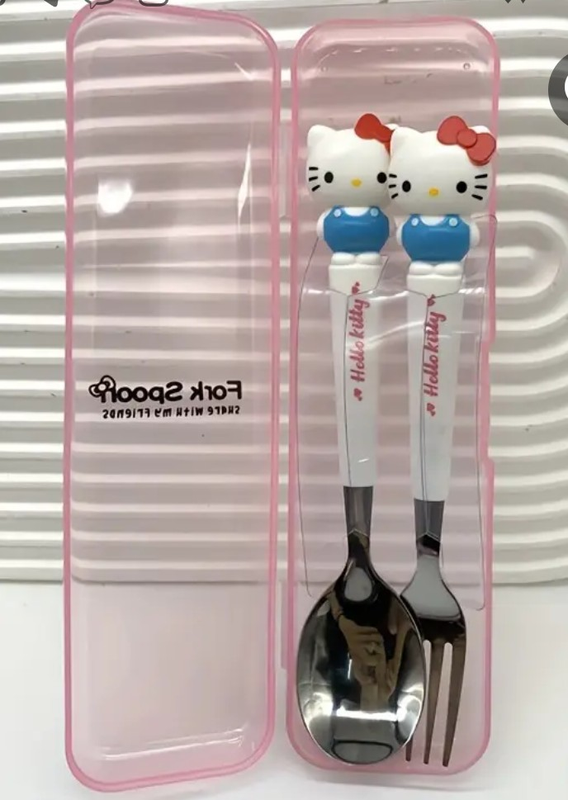 Набор детских столовых приборов hello kitty (ложка+вилка) с контейнером для хранения