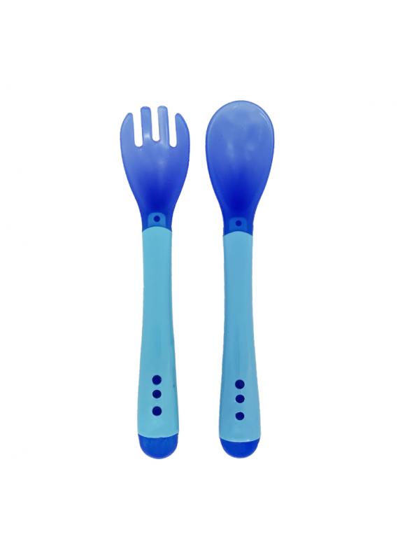 Набор ложка+вилка с индикатором температуры mumlove синий