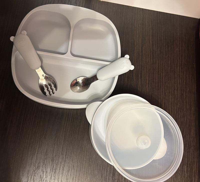 Набір дитячого посуду , користувались не багато , дефект на ложці на останньому фото , все виконано з безпечних матеріалів , можна запікати , заморожувати і гріти в мікрохвильовій печі, дуже класний набір До приборів ще йде футляр