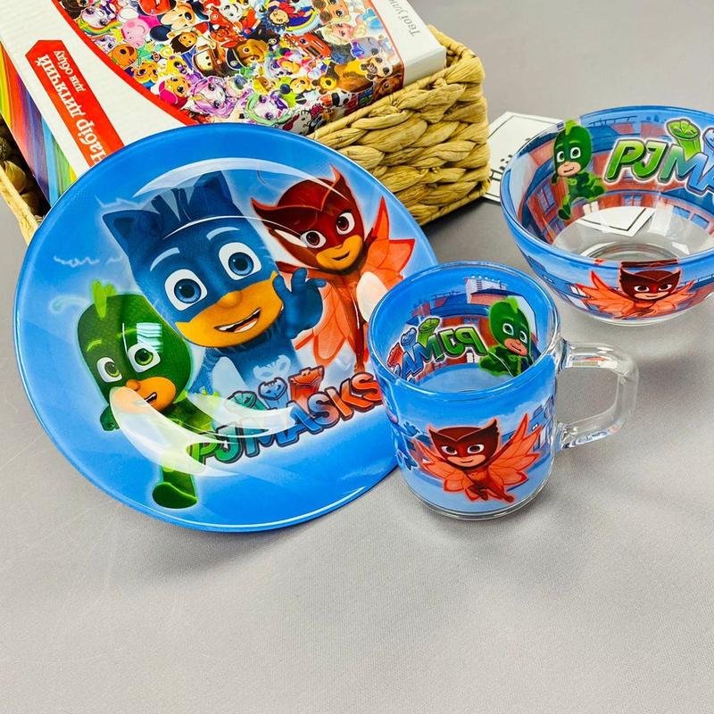 Красивий і яскравий набір дитячого посуду обов'язково порадує вашу дитину. Яскраві кольори і улюблені казкові персонажі обов'язково піднімуть настрій і, що важливо для молодих матусь, підвищить апетит вашого малюка. Сніданок, обід і вечерю стануть набагато веселіше. Дитячий посуд виготовлений з якісного фарфор кераміка кухонне. Дитячі набори можна мити в посудомийній машині і використовувати для розігріву в мікрохвильовій печі. Дитячі набори знаходяться в яскравій подарунковій упаковці і послужать відмінним подарунком для маленьких хлопчиків і дівчаток.