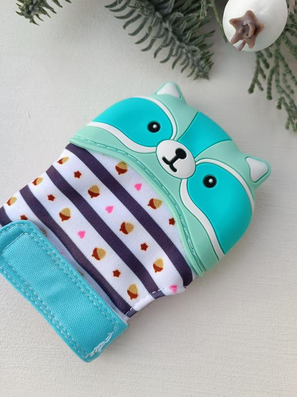 Митенка прорезыватель грызунец енотик (мята) на ручку, фиксируется на липучке