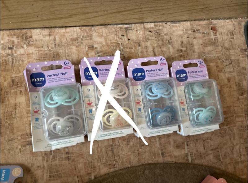 Нові, оригінал Новые пустышки MAM perfect nuit ночные 18+ месяца, силикон. Набор 2 пустышки в контейнере для стерилизации. Ціна 600 грн за упаковку. Есть також они на 18+ месяца. И есть другой формы Есть так же бутылочки, сменные соски, контейнеры для смеси этой фирмы. Есть много других детских товаров, мед, одежда, обувь, носочки, тарелки, поильники, ложечки, гигиена, Судокрем, салфетки, памперсы, наматрасник, трусы, майки, тапочки, каши на завтрак. Самовывоз, безпечна угода, новая и Укрпошта, розетка