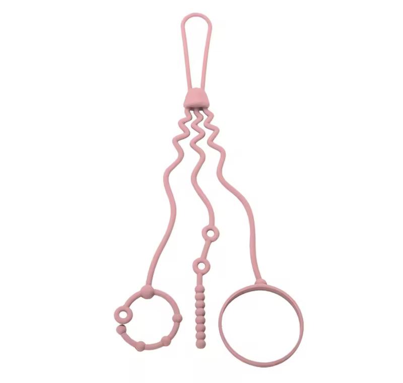 Силіконовий тримач-стропа для пляшечки, пустушки, іграшок + кліпса в комплекті рожевий