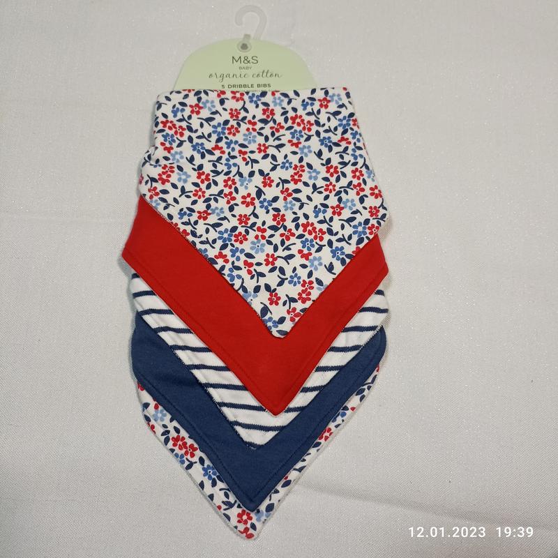 Комплект 5 шт слюнявчиків на кнопках. Не промокають. Махра з іншого боку.