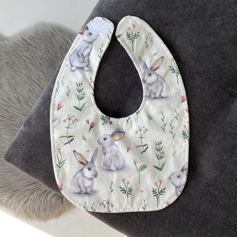 Непромокаючий слюнявчик на липучій застібці з зайчиками від minky home