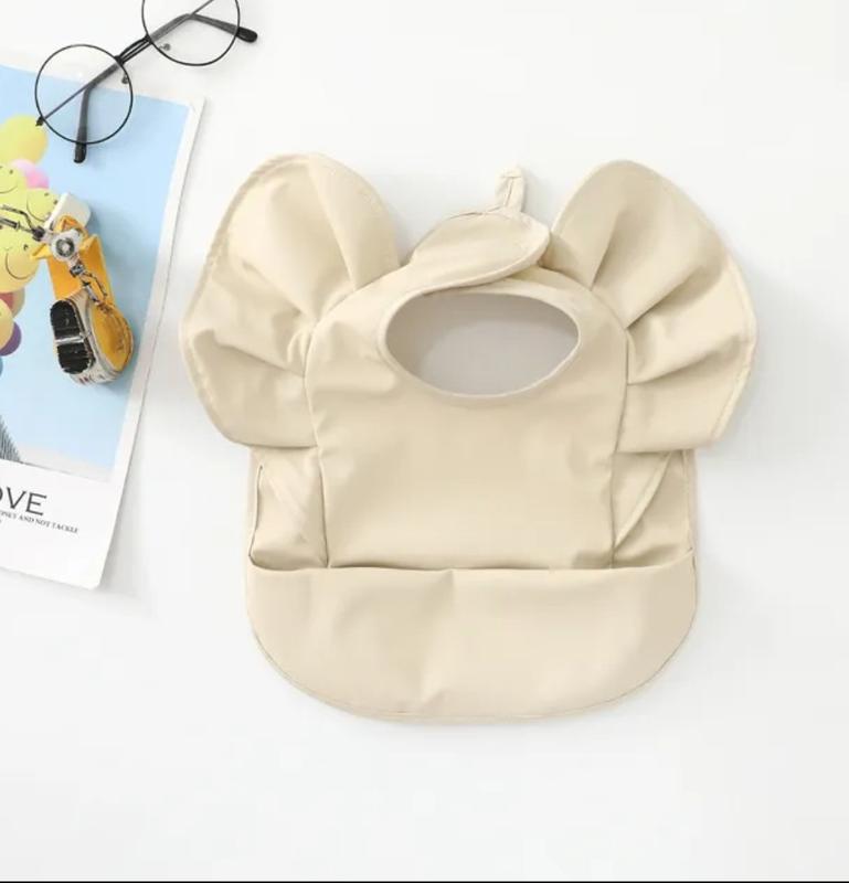 Дитячий багаторазовий не промокаючий нагрудник з рюшами бежевий