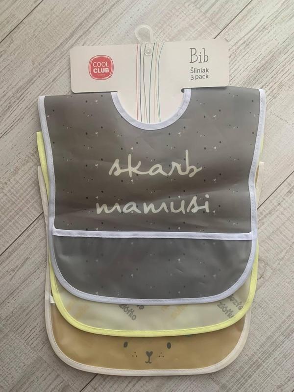Набір дитячих нагрудників з кишенькою. Кількість в комплекті: 3 шт. Застібка- липучка. Матеріал: 100% поліуретан