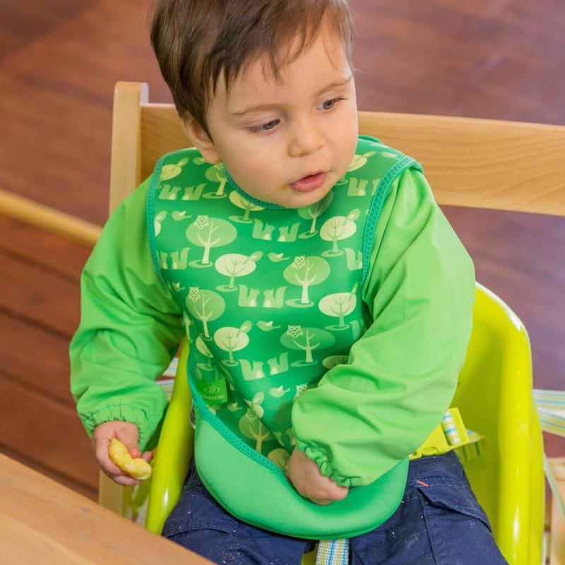 Ідеальний слюнявчик з м'якою кишенею-клаптиком для зберігання їжі та напоїв, ідеально підходить для дітей, які вчаться їсти самостійно Ці слюнявчики з рукавами захищають вашого малюка від забруднення під час їжі та «гри» з ним. Чудова посадка та застібка на липучці ззаду гарантують, що нагрудник не спаде Гнучкий та водонепроникний нагрудник, виготовлений з неопрену та міцного матеріалу на рукавах Зручний, безпечний та регульований за потреби Можна прати вручну або в пральній машині (30°C), можна сушити в сушильній машині Розміри нагрудника Обхват шиї: до 35 см. Ширина: 28 см. Довжина: 28 см від шиї до низу кишені. Розмір: 76 x 33 см.( в розгорнутому вигляді ) Про матеріал Неопрен фантастично м'який та гнучкий, приємний на дотик, а завдяки м'якій гумовій вставці посередині він на 100% водонепроникний. Зовнішня частина покрита міцним та гнучким нейлоном, який легко прати, вбирає рідини та швидко сохне. Неопрен дуже добре тримає форму та має тривалий термін служби, що робить його гарною інвестицією.